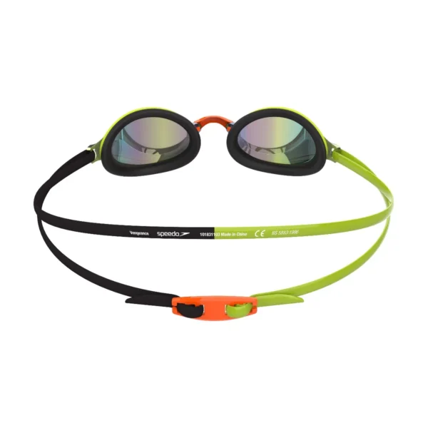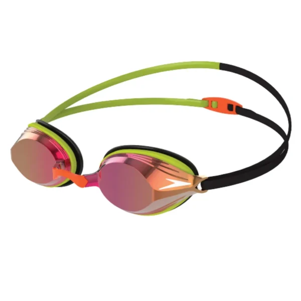 Diseñadas para las carreras, las gafas Vengeance Mirror cuentan con un nuevo perfil de lente aerodinámico diseñado para atravesar el agua. Con puentes nasales intercambiables y una cinta de silicona doble para la cabeza, los atletas jóvenes pueden lograr un ajuste adecuado para ellos.. Totalmente aprobado por FINA.