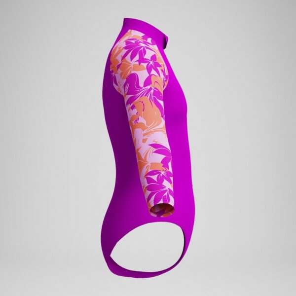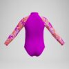 Disfruta de días de playa y piscina con total tranquilidad gracias a nuestra Ropa de Baño Manga Larga en tonos vibrantes. Con mangas florales y cobertura adicional en cuello y espalda, protege la piel delicada del sol. Su cierre frontal facilita el cambio, y su tejido EnduraBrite ofrece mayor resistencia al cloro que las telas convencionales.