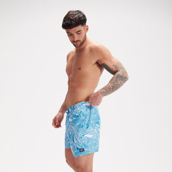 Relájese con estilo mientras luce el Short de Natación Speedo Leisure Printed 16″ en azul, decorado con un llamativo estampado paisley. Este short, ideal para la playa y la piscina, está confeccionado con 100% poliéster reciclado, contribuyendo a un enfoque más sostenible.
