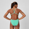 Su diseño de espalda en V con tirantes finos se bloquea entre los omóplatos, permitiendo una flexibilidad superior en los hombros, mientras que el corte de pierna alto y la cobertura «cheeky» (más cavada) ofrecen un estilo moderno y sin restricciones. Fabricada con tecnología Endurance+, es 100% resistente al cloro y al desgaste.