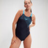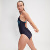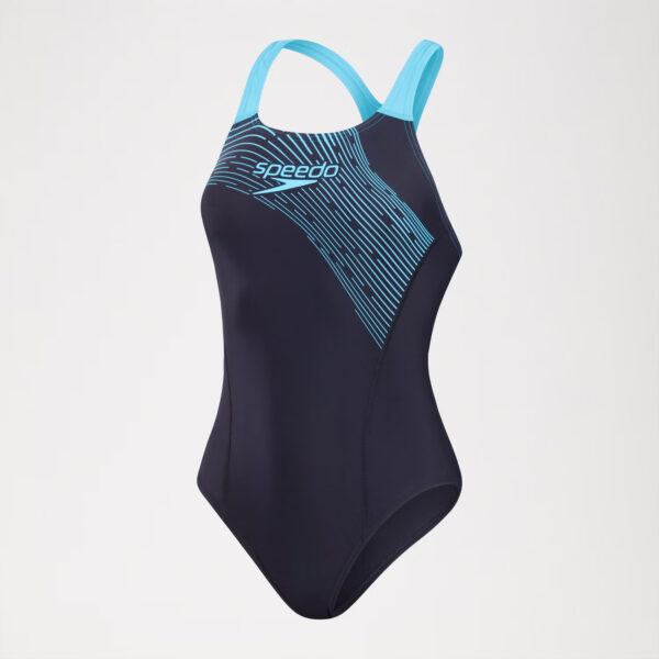 Speedo Classics, todo lo que necesitas para una gran nata. Crucero a través del entrenamiento con nuestro elegante traje de baño Medley Medalist, con la última evolución de nuestro logotipo de Medley gráfico en un vívido estampado de plastisol azul con correas de color-pop a juego.