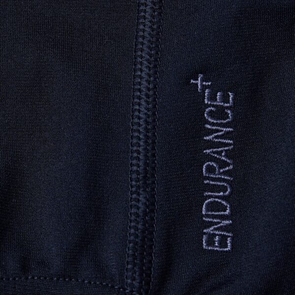 El tejido ECO Endurance es resistente al cloro, seca rápido y uno de los hilos está hecho de residuos 100% post-consumo, por lo que se hace al 50% de material reciclado