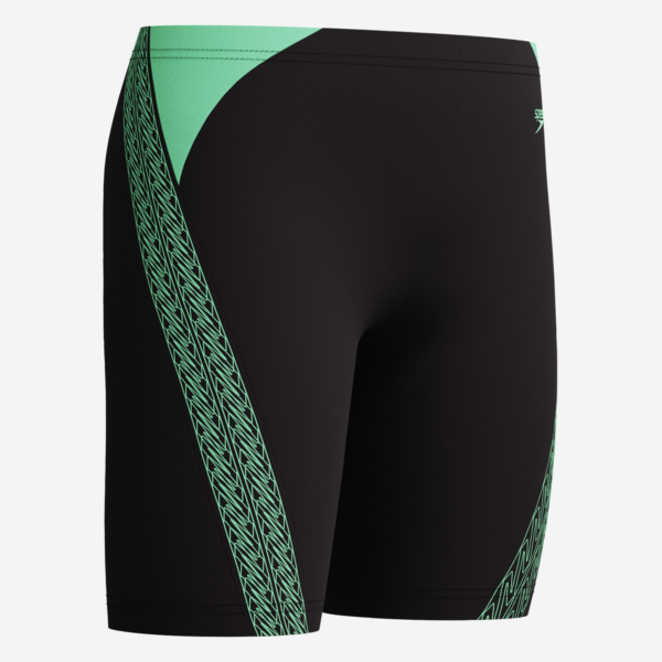 El Jammer Hyperboom Splice es la elección perfecta para jóvenes nadadores que buscan estilo y durabilidad. Su diseño deportivo incorpora una moderna franja con el logotipo Speedo en verde, brindando un look dinámico en la piscina.