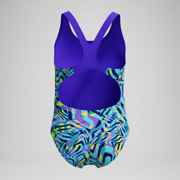 Diseñada para las niñas más activas, esta ropa de baño combina diversión y funcionalidad. El modelo Splashback es uno de los favoritos para entrenamientos y clases, ya que sus tirantes están ubicados estratégicamente lejos de los hombros, permitiendo una rotación de brazos sin restricciones y mayor comodidad en el agua.