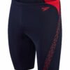 CARACTERÍSTICAS 39 cm de longitud CREORA HighClo: alta resistencia al cloro Durable y duradero Forro frontal Cordón interno Retención de forma Materiales: 80% poliamida reciclada, 20% elastano El bañador HyperBoom Splice Swim Jammer para niños de Speedo es el traje de baño perfecto para nadadores jóvenes, diseñado con el icónico Estilo Speedo con rayas rojas con el logo del boom. La retención de la forma y el forro frontal ofrecen comodidad y modestia, mientras que el cordón interno garantiza un ajuste seguro. Hechos de tela duradera Eco EnduraFlex, estos jammers brindan alta resistencia al cloro y se ajustan como nuevos por más tiempo con CREORA HighClo.
