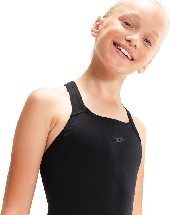 Nuestro clásico traje Medallista junior, actualizado con un estampado blanco llamativo. El traje de baño Speedo Eco Endurance+ Medalist Negro ofrece el mismo corte y ajuste que los jóvenes nadadores adoran, proporcionando gran movimiento y flexibilidad en los hombros. Se seca rápidamente y es 100% resistente al cloro, ideal para clases y entrenamientos. Además, el tejido ECO Endurance+ utiliza hilo de poliéster 100% reciclado de residuos posconsumo, como botellas de plástico recicladas.